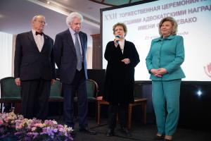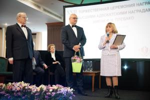 Для вручения Золотой медали имени Ф.Н. Плевако в номинации «За крупный вклад в развитие российской адвокатуры» на сцену была приглашена Уполномоченный по правам человека в Российской Федерации, заслуженный юрист Российской Федерации, генерал-майор милиции в отставке, доктор юридических наук, профессор Татьяна Николаевна Москалькова. «О каждом номинанте нужно рассказывать, потому что страна большая, не всех знают. Но Татьяну Николаевну знает каждый адвокат. И каждый адвокат говорит “спасибо”, потому что вы – адвокат адвокатов, – сказала президент ФПА РФ Светлана Володина. – У вас есть все наши награды, но у нас нет таких наград, чтобы полностью оценить ваш вклад».