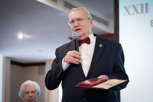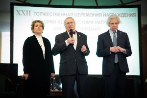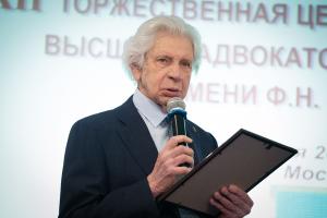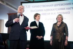Затем Золотая медаль имени Ф.Н. Плевако в номинации «За крупный вклад в развитие российской адвокатуры» была вручена председателю Московского отделения, члену Бюро Президиума Ассоциации юристов России, проректору Московского государственного университета имени М.В. Ломоносова по инновационному научно-технологическому развитию, заместителю председателя, члену Президиума Координационного совета Международного союза юристов, члену-корреспонденту РАЕН, заслуженному юристу Российской Федерации, доктору юридических наук Виктору Алексеевичу Вайпану.