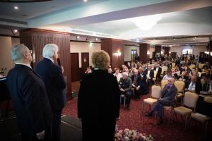 В завершение церемонии к собравшимся обратились вице-президент ФПА РФ, президент Адвокатской палаты Московской области Алексей Галоганов и председатель Комиссии Совета ФПА РФ по защите прав адвокатов, первый вице-президент Адвокатской палаты города Москвы Генри Резник.